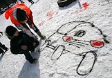 Жанровая фотография. Мальчик рисует на снегу автомобиль.