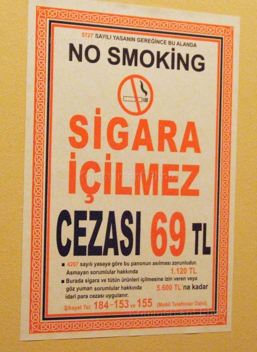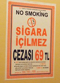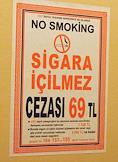 Жанроваф фотография. Объявление о запрете курения и штрафе в 69 турецких лир за нарушение запрета.