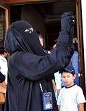 Виды Стамбула. Женщина в парандже и солнечных очках фотографирует.
