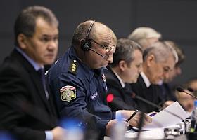 Заместитель министра России по делам гражданской обороны, чрезвычайным ситуациям и ликвидации последствий стихийных бедствий Павел Попов (в центре) на расширенном заседании Правительственной комиссии по предупреждению и ликвидации чрезвычайных ситуаций и обеспечению пожарной безопасности. Заседание прошло в Главном управлении МЧС России.