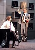 Актеры Игорь Гордин (слева) и Виктория Толстоганова (справа) во время пресс-показа спектакля Театра Наций "Метод Гренхольма" Жорди Гальсеран в постановке Явора Гырдева на сцене Центра имени Вс.Мейерхольда.