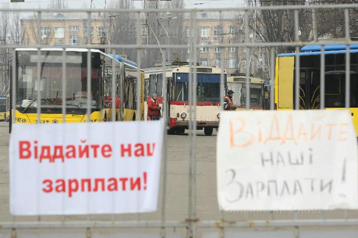 Акция протеста водителей троллейбусно-эксплуатационного депо №2 города Киева и НФПУ против систематической задержки зарплат работникам депо и других нарушений их прав.