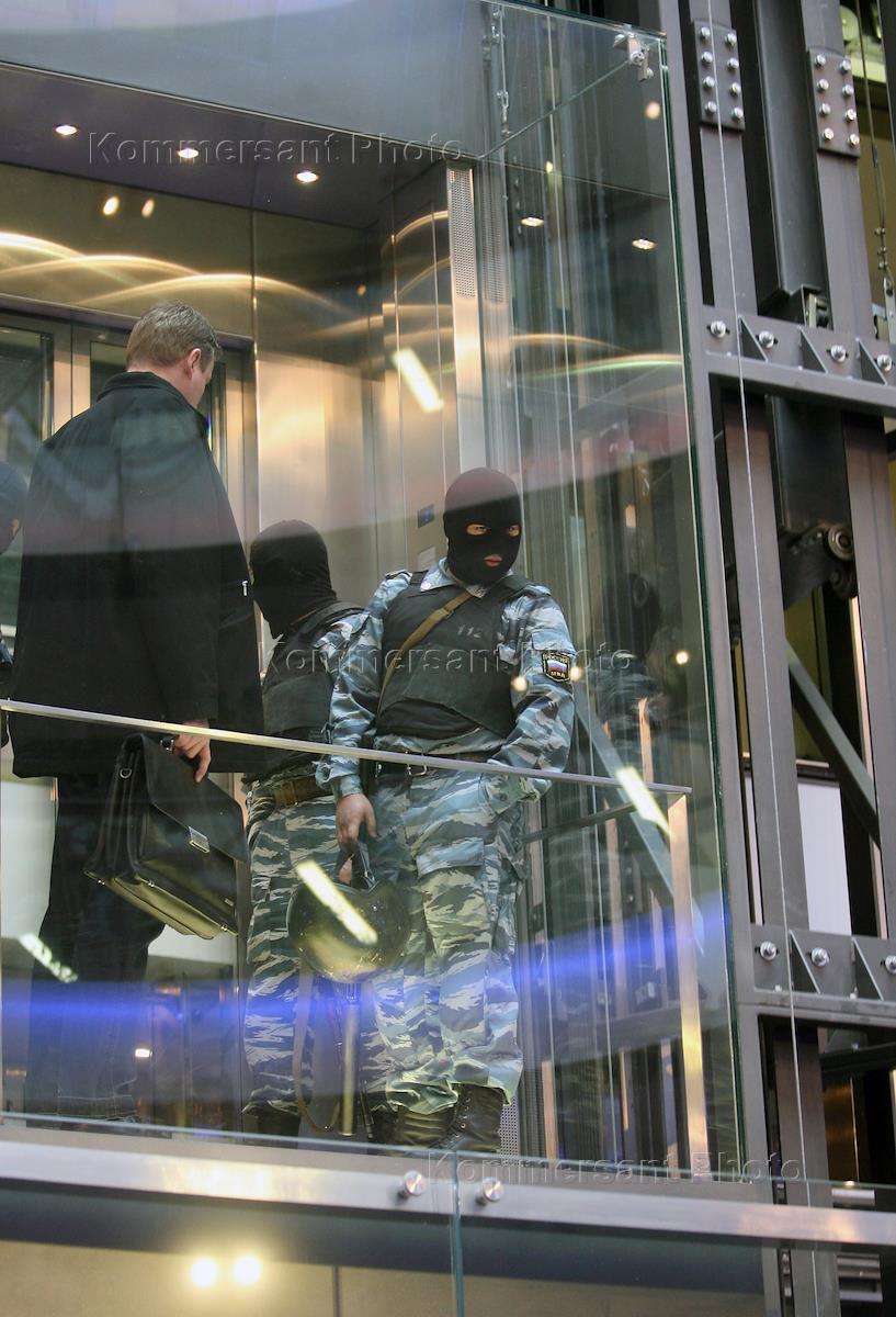 Police special forces search the Mirax Group offices in the Moscow City's Federation international trade center.