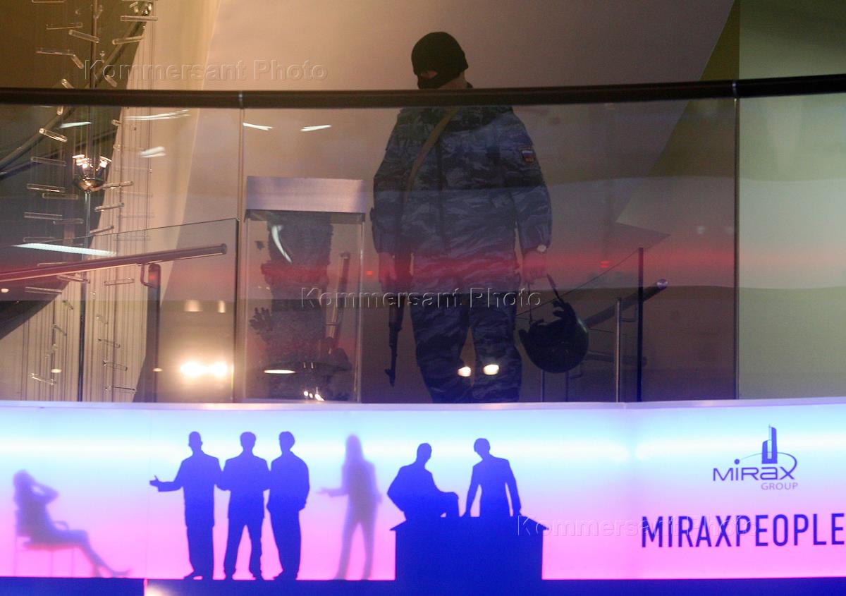 Сотрудники ОМОНа во время проведения обыска в офисе компании Mirax group, расположенном в деловом комплексе "Федерация" в Московском международном деловом центре (ММДЦ) "Москва-Сити".