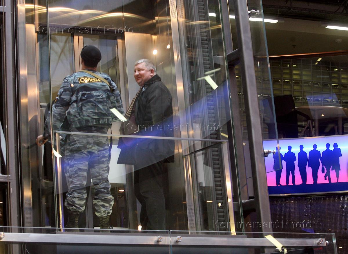 Председатель совета директоров Mirax Group Сергей Полонский (справа) в офисе компании Mirax Group, расположенном в деловом комплексе "Федерация" в Московском международном деловом центре (ММДЦ) "Москва-Сити", где оперативники департамента экономической безопасности МВД России совместно с сотрудниками Главного следственного управления ГУВД Москвы провели обыск.