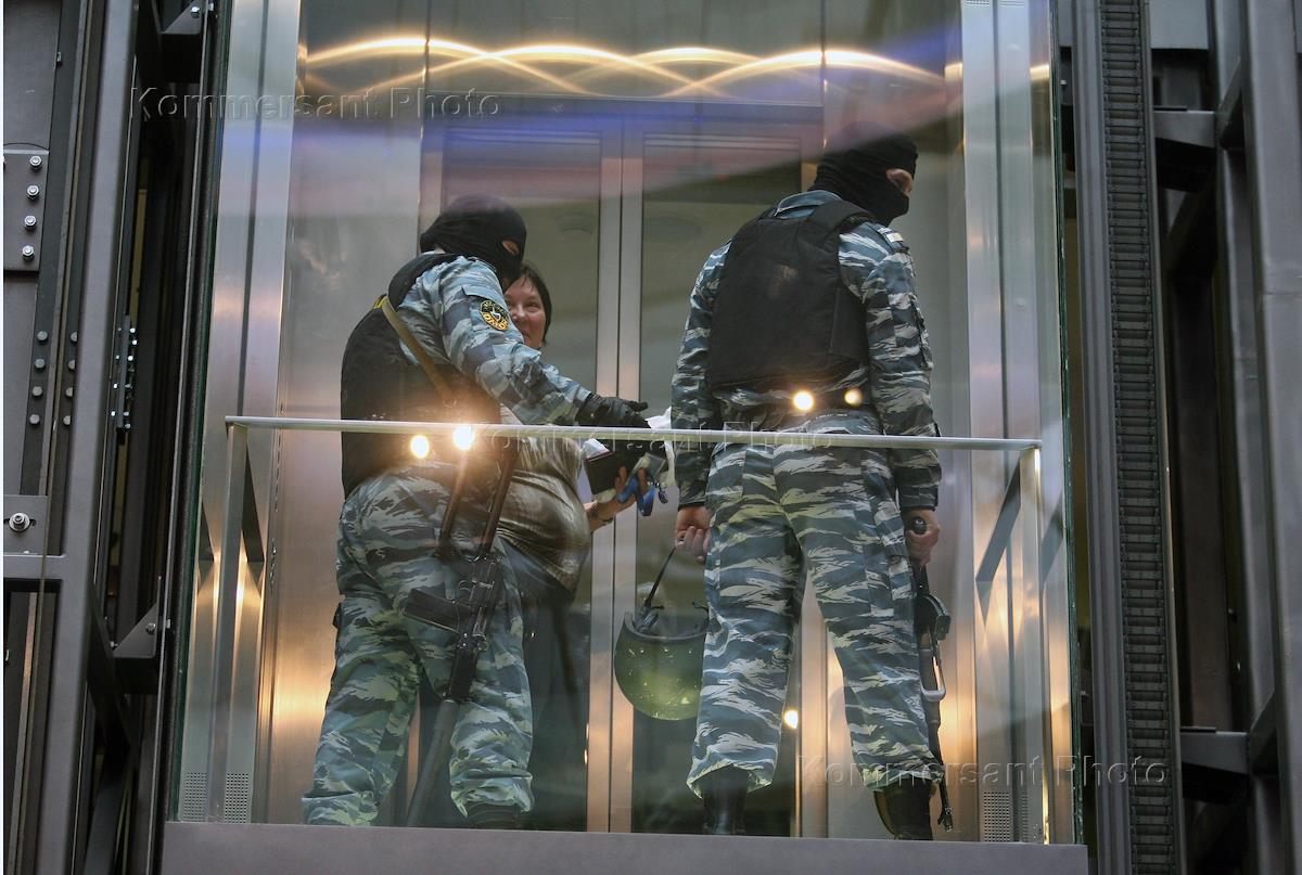 Сотрудники ОМОНа во время проведения обыска в офисе компании Mirax group, расположенном в деловом комплексе "Федерация" в Московском международном деловом центре (ММДЦ) "Москва-Сити".