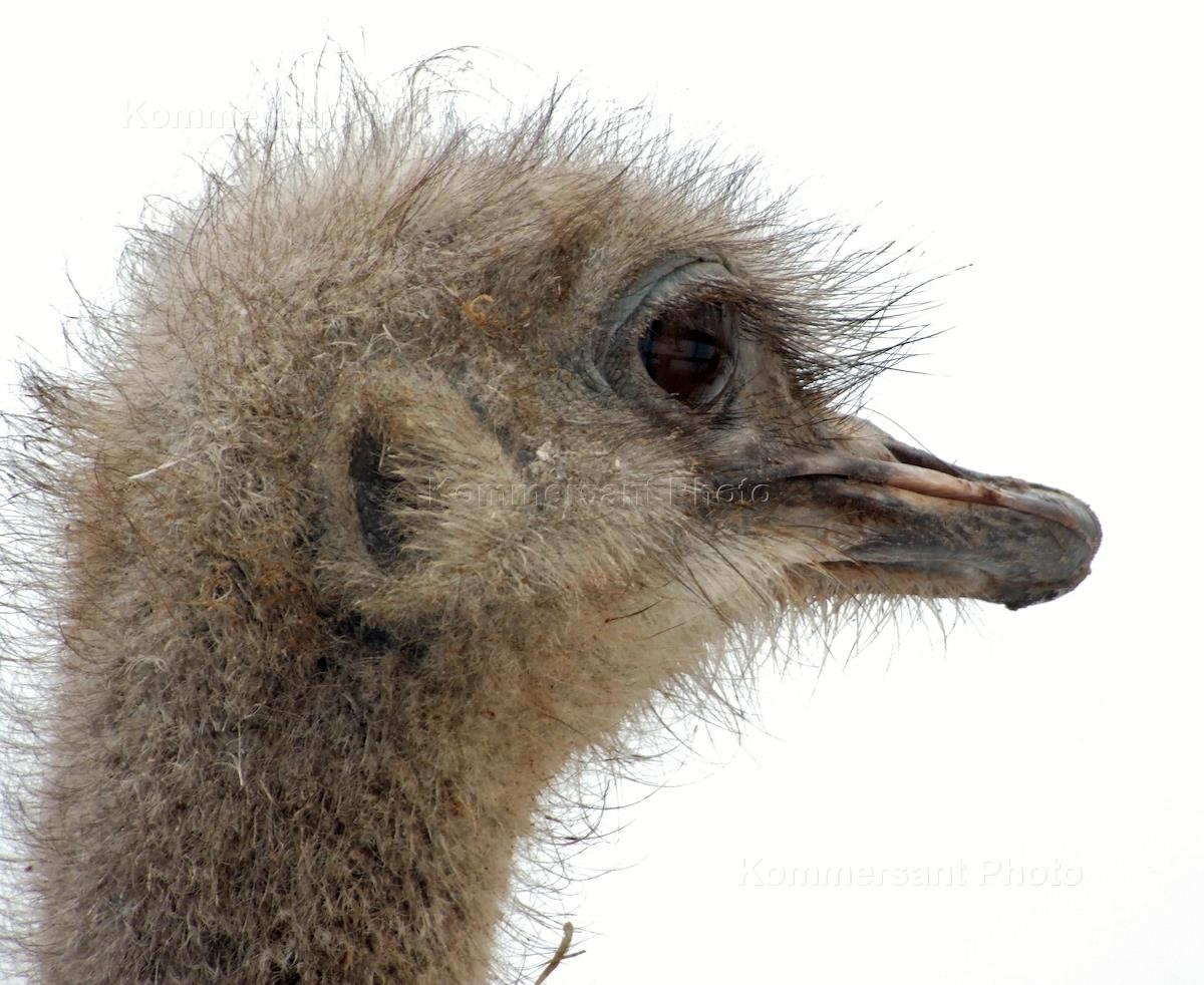 Genre photo. Ostrich in the private kennel for animals.
