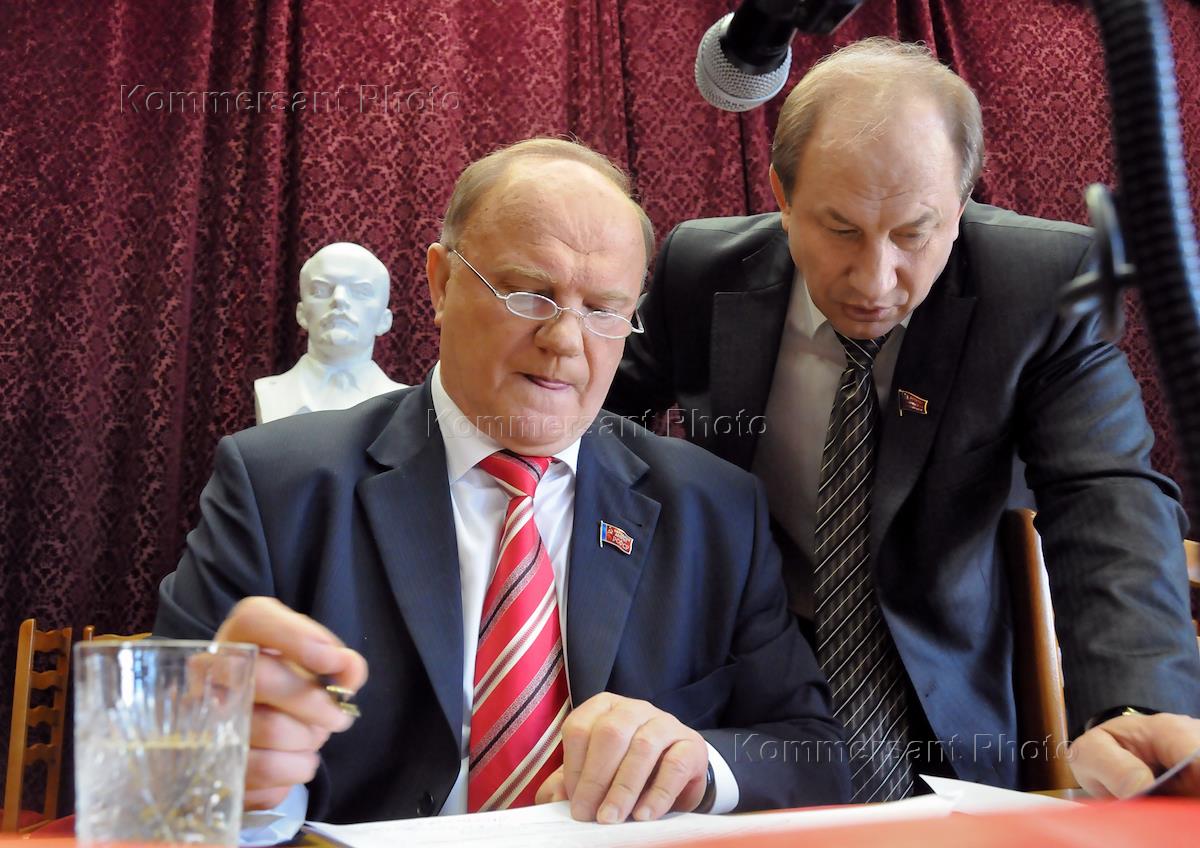 Leader of the Communist Party of the Russian Federation Gennady Zyuganov (left) at the 5th joint Plenium of the Central Committee and the Central Control and Revision Committee of the Communist Party of the Russian Federation in the village of Moskovsky.