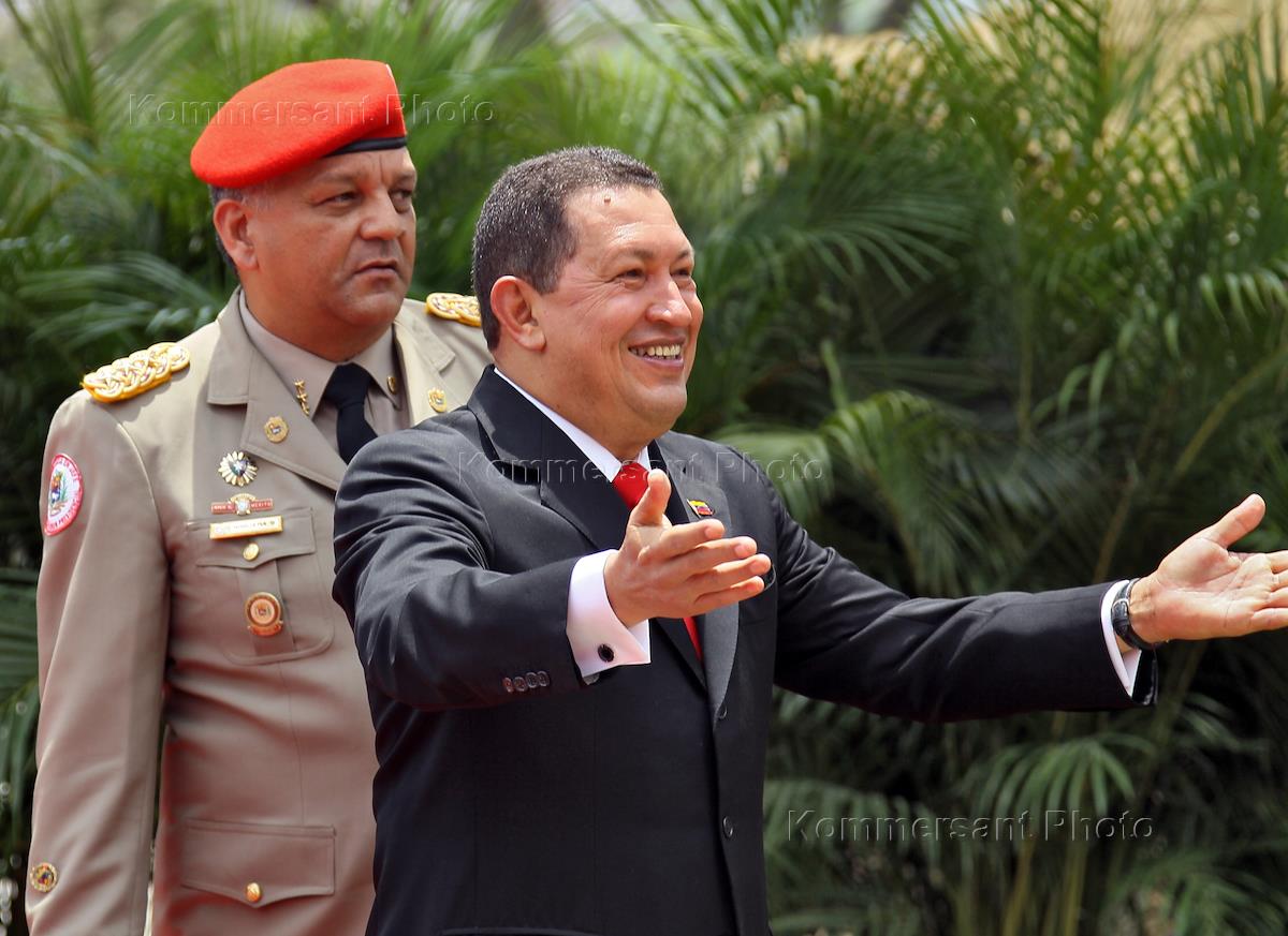 Президент Венесуэлы Уго Чавес на церемонии встречи председателя правительства России Владимира Путина, прибывшего с официальным визитом в Каракас.