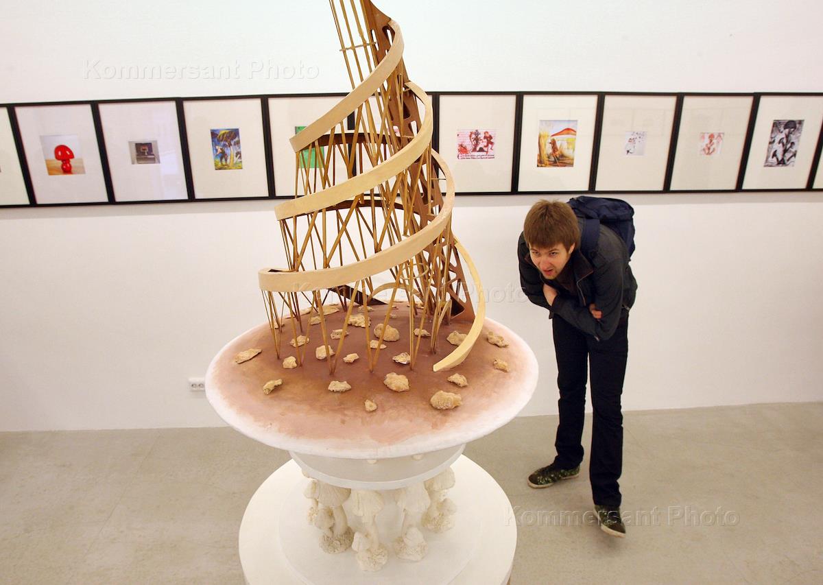 Художник Михаил Молочников на церемонии открытия выставки "Mush-Room", в Aftergallery.