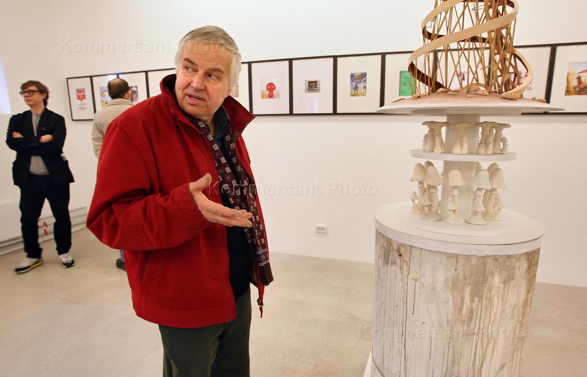 Художник Игорь Макаревич на открытии выставки "Mush-Room", в Aftergallery.