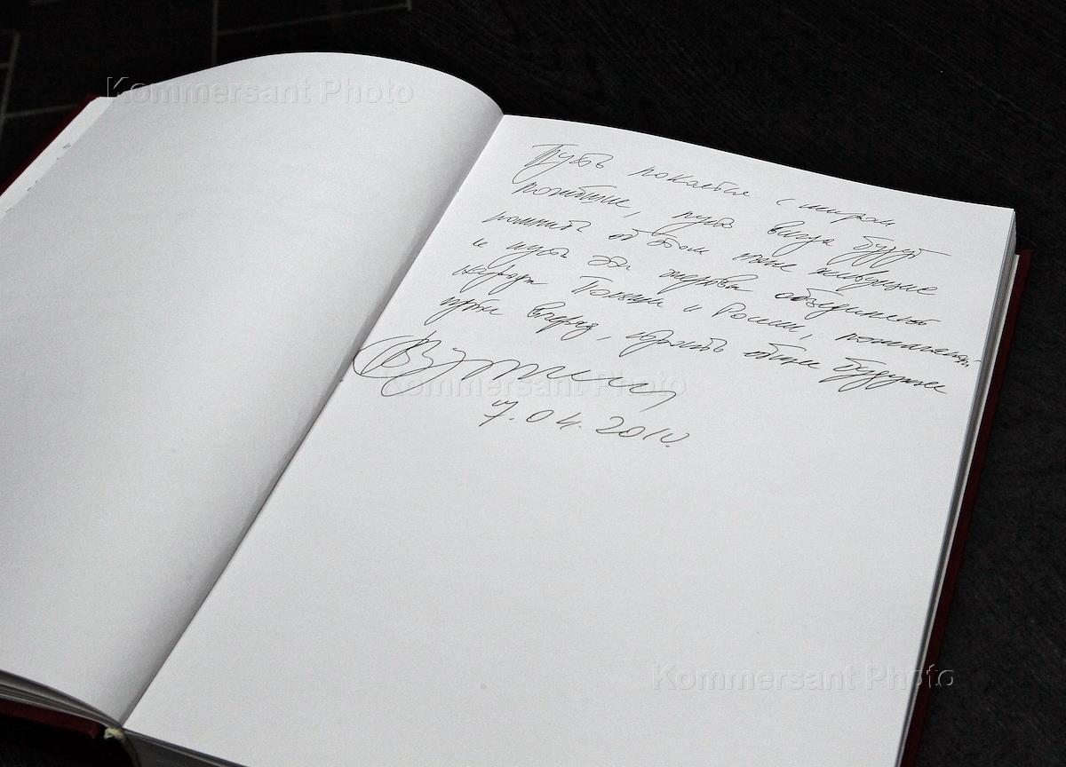 Russian Prime Minister Vladimir Putin signed the guest book at the Katyn memorial complex: "May the dead rest in peace. Let the living be faithful to their memory, creating a future in which there will be no place for human suffering and wars. But where there is thruth, responsibility and mutual respect."