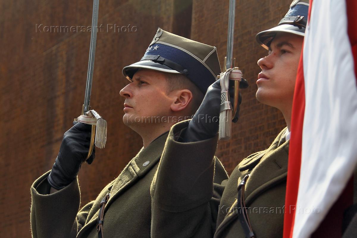 Polish officer at the ceremony of laying stone in ground of a Church of the Resurrection in the memorial complex "Katyn" by the Prime Minister of Russia Vladimir Putin and Prime Minister of Poland Donald Tusk.