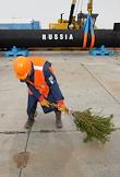 Церемония начала строительства газопровода "Северный поток" в бухте Портовая. Подготовка к торжественной церемонии.