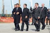 Глава РАО "Газпром" Алексей Миллер (слева), президент России Дмитрий Медведев (в центре) и председатель комитета акционеров компании "Северный Поток" (Nord Stream) Герхард Шредер (второй справа) во время официальной церемонии начала строительства газопровода "Северный поток" (Nord Stream) в бухте Портовая.