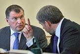 Рабочая поездка Председателя правительства России Владимира Путина в Мурманскую область. Слева направо: заместитель председателя правительства России Игорь Сечин и губернатор Приморского края Сергей Дарькин на совещании по вопросу "О развитии береговой инфраструктуры по приемке, переработке, хранению и транспортировке рыбной продукции".