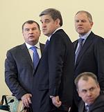 Рабочая поездка Председателя правительства России Владимира Путина в Мурманскую область. Слева направо: заместитель председателя правительства России Игорь Сечин, губернатор Приморского края Сергей Дарькин и руководитель Федерального агентства по рыболовству России Андрей Крайний на совещании по вопросу "О развитии береговой инфраструктуры по приемке, переработке, хранению и транспортировке рыбной продукции".