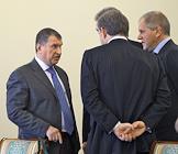 Рабочая поездка Председателя правительства РФ Владимира Путина в Мурманскую область. Руководитель Федеральной службы по надзору в сфере защиты прав потребителей и благополучия человека Геннадий Онищенко (слева) и полномочный представитель президента России в Северо-Западном федеральном округе Илья Клебанов (справа) на совещании по вопросу "О развитии береговой инфраструктуры по приемке, переработке, хранению и транспортировке рыбной продукции".