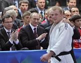 Председатель правительства России Владимир Путин (слева) на соревнованиях чемпионата Европы по дзюдо.