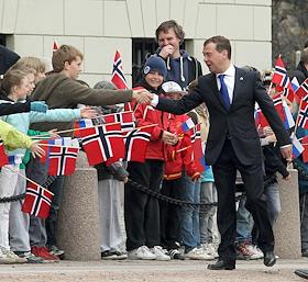 Официальный визит президента РФ в Норвегию. Официальная церемония встречи Президента России Дмитрия Медведева и короля Норвегии Харальда V.