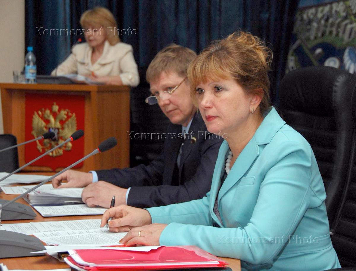 Председатель городской думы Благовещенска Сергей Левицкий (в центре) и исполняющий обязанности мэра Благовещенска Валентина Калита (справа) во время заседания городской думы Благовещенска.