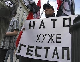 Пикет партии Национал-Большевиков Петербурга против участия НАТО в параде Победы.