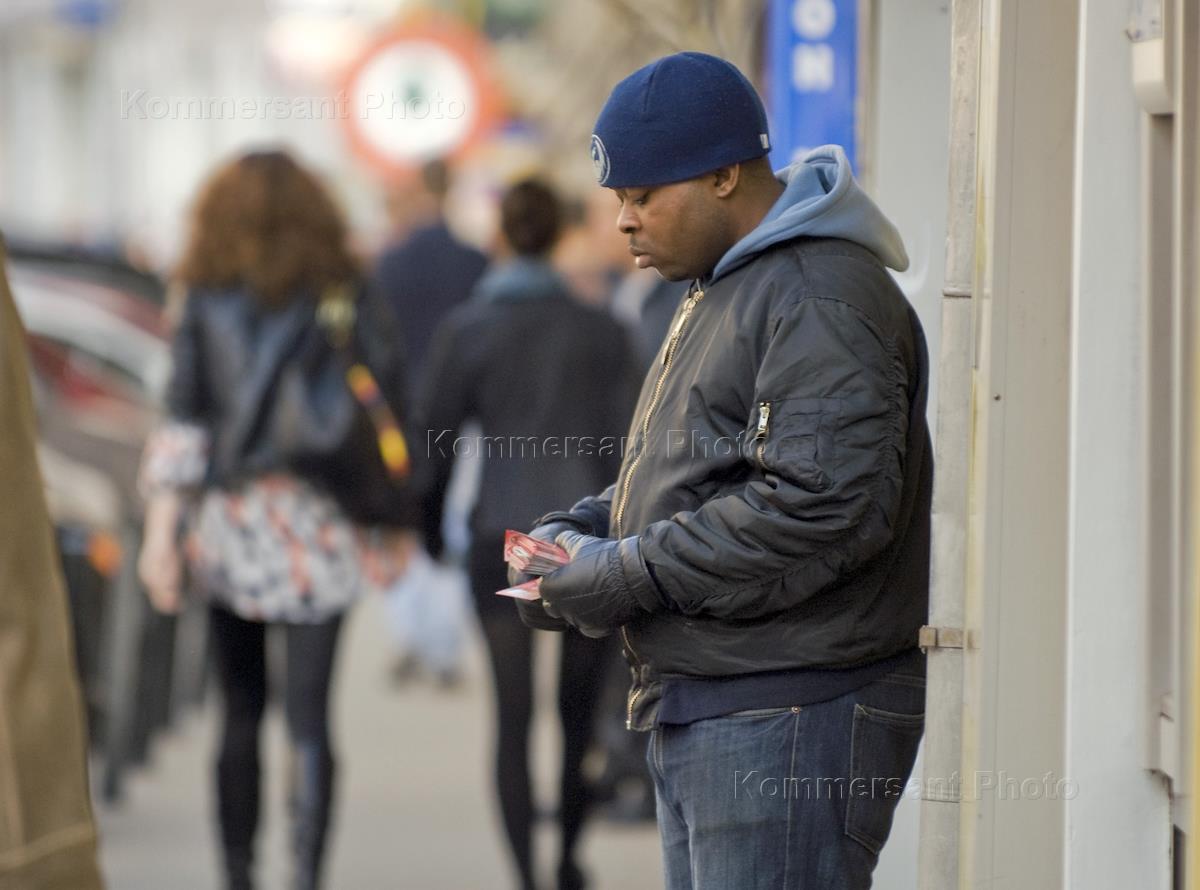 Жанровая фотография. Чернокожий мужчина на улице города.