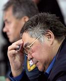 Спасательная операция на месте взрыва в шахте "Распадская" в городе Междуреченск Кемеровской области. Губернатор Кемеровской области Амангельды Тулеев на пресс-конференции.