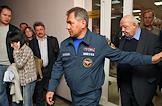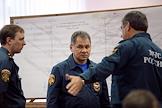 Министр России по делам гражданской обороны, чрезвычайным ситуациям и ликвидации последствий стихийных бедствий Сергей Шойгу (в центре) во время спасательной операции на месте взрыва в шахте "Распадская" в городе Междуреченск Кемеровской области.