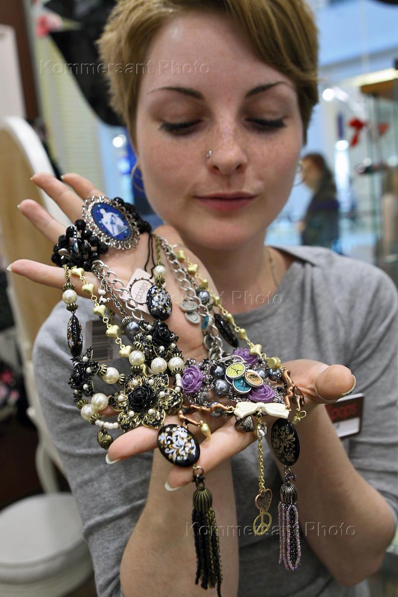 Корреспондент журнала "Деньги" издательского дома (ИД) "Коммерсантъ" Иван Ждакаев в магазине аксессуаров "Lollipops".