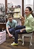 Корреспондент журнала "Деньги" издательского дома (ИД) "Коммерсантъ" Иван Ждакаев (слева) в магазине аксессуаров "Lollipops".