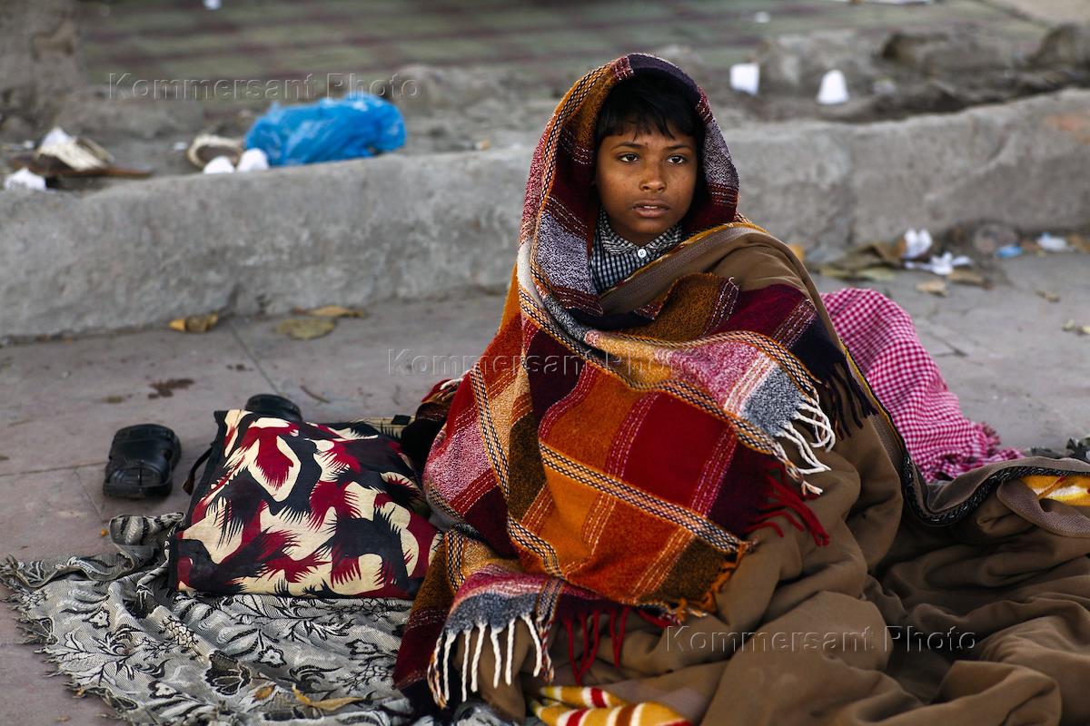 Виды города Харидвар. Паломники, прибывшие на праздник праздника Кумбха-мела, ночуют на улице.