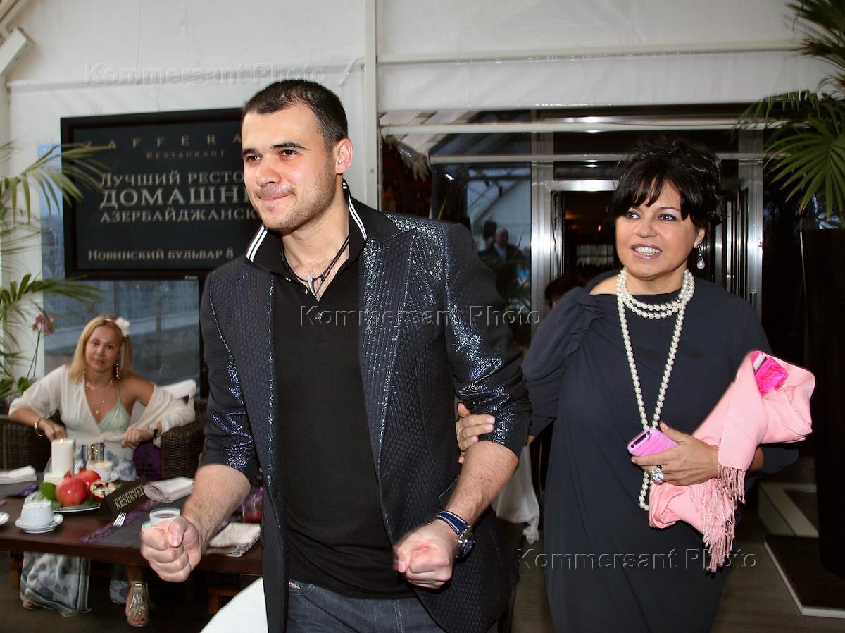 Коммерческий директор Crocus Group Эмин Агаларов (слева) с мамой Ириной Агаларовой (справа) на церемонии открытия летней веранды Zafferano в Lotte Plaza.
