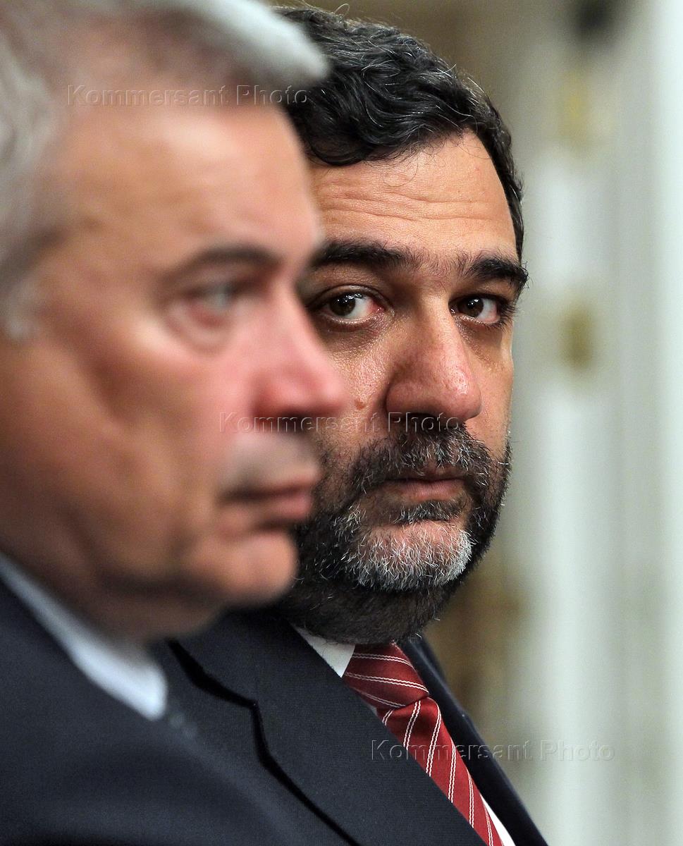 Президент нефтяной компании "ЛУКойл" Вагит Алекперов (слева) и председатель совета директоров Группы компаний "Тройка-Диалог" Рубен Варданян (справа) на встрече председателя правительства России Владимира Путина с представителями Российского союза промышленников и предпринимателей (РСПП).