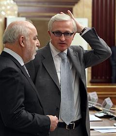 Заместитель председателя правительства России Игорь Сечин (слева) и заместитель председателя правительства России, министр финансов Алексей Кудрин (справа) на встрече председателя правительства России Владимира Путина с представителями Российского союза промышленников и предпринимателей (РСПП).