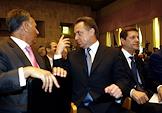 Президент олимпийского комитета России (ОКР) Александр Жуков (слева) на собрании олимпийского комитета после процедуры избрания его президентом.
