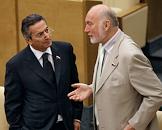 Член комитета Государственной думы России по собственности Владимир Пехтин (слева) и председатель комитета Государственной думы России по собственности Виктор Плескачевский (справа) на заседании Госдумы.