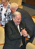 Певец, член комитета Государственной думы (ГД) России по информационной политике, информационным технологиям и связи Иосиф Кобзон (слева) и кинорежиссер, член комитета ГД России по информационной политике, информационным технологиям и связи Станислав Говорухин (справа) на заседании Госдумы.