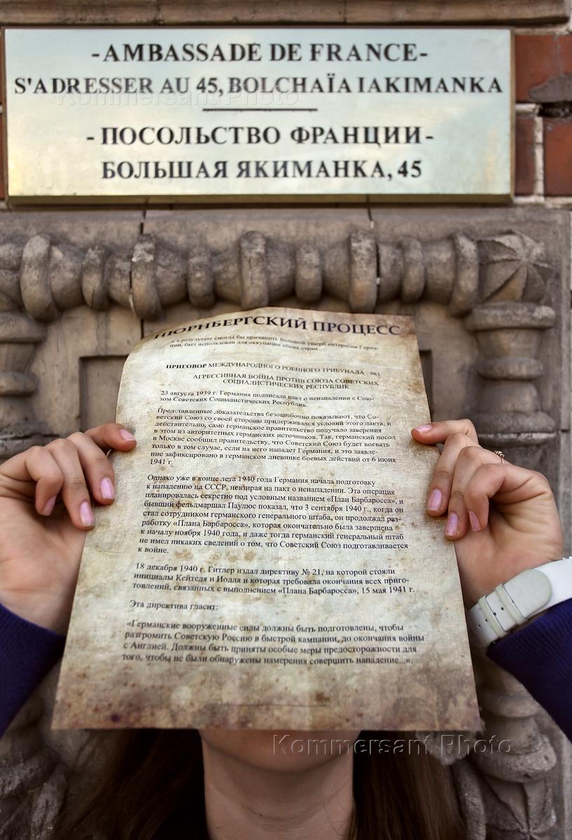 Пикет с требованием осудить решение Европейского суда по правам человека, который удовлетворил иск Латвии в отношении советского партизана Василия Кононова. Пикет, организованный активистами молодежного движения "Наши", прошел у посольства Франции.