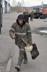 Шахта "Распадская". Шахтеры после рабочей смены.