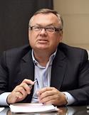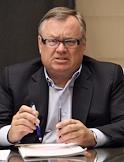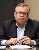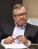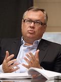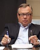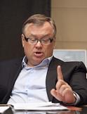 Президент "Внешторгбанка" Андрей Костин во время интервью в офисе компании.
