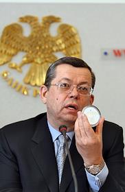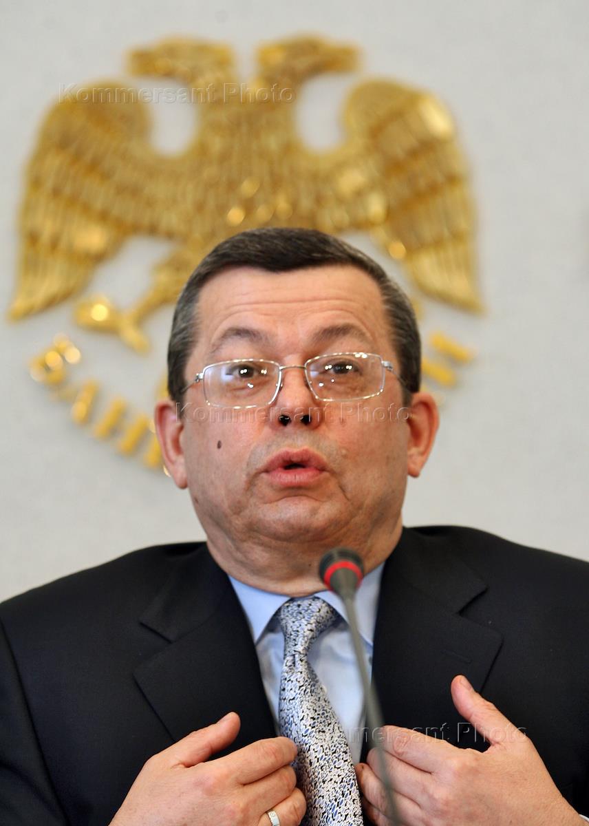 Заместитель председателя Центрального Банка России Георгий Лунтовский на пресс-конференции "Юбилейные монеты выпускаемые Центробанком России".