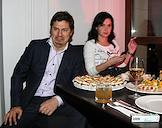 Слева направо: совладелица клуба "Газгольдер" Анна Антимоний и ресторатор Александр Соркин на открытии Tatler Club в гостинице "Украина".