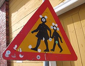 Жанровая фотография. Наклейки на дорожном знаке "Осторожно, дети!".