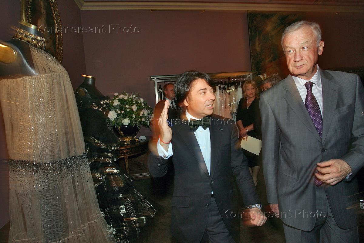 Префект Северного административного округа Москвы Олег Митволь (слева) и модельер Валентин Юдашкин (справа) на коктейле по случаю открытия флагманского представительства Дома моды Valentin Yudashkin в Вознесенском переулке.