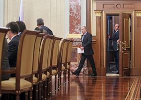 Председатель правительства России Владимир Путин (в центре) на заседании правительства России.