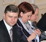 Министр сельского хозяйства России Елена Скрынник (в центре) и министр регионального развития Виктор Басаргин (справа) на совещании по вопросу "О внесении изменений в Федеральный закон "О федеральном бюджете на 2010 год и на плановый период 2011-2012 годов". Совещание прошло в Ново-Огарево.