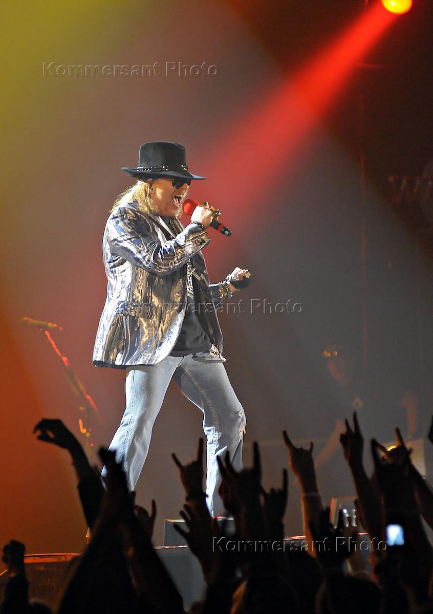Солист группы Guns N'Roses Эксл Роуз (Axl Rose) во время выступления группы в Ледовом дворце в рамках тура Chinese Democracy World Tour.