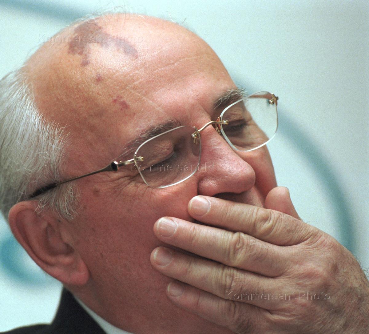 First President of the USSR Mikhail Gorbachev during a news conference at the Interfax agency.