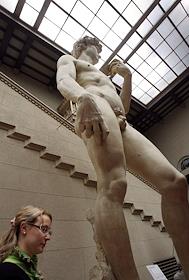 Церемония открытия выставки "От Рафаэля до Гойи" из собрания Будапештского музея изобразительных искусств в Государственном музее изобразительных искусств (ГМИИ) имени А.С.Пушкина. Фрагмент статуи Давида в итальянском дворике Музея.